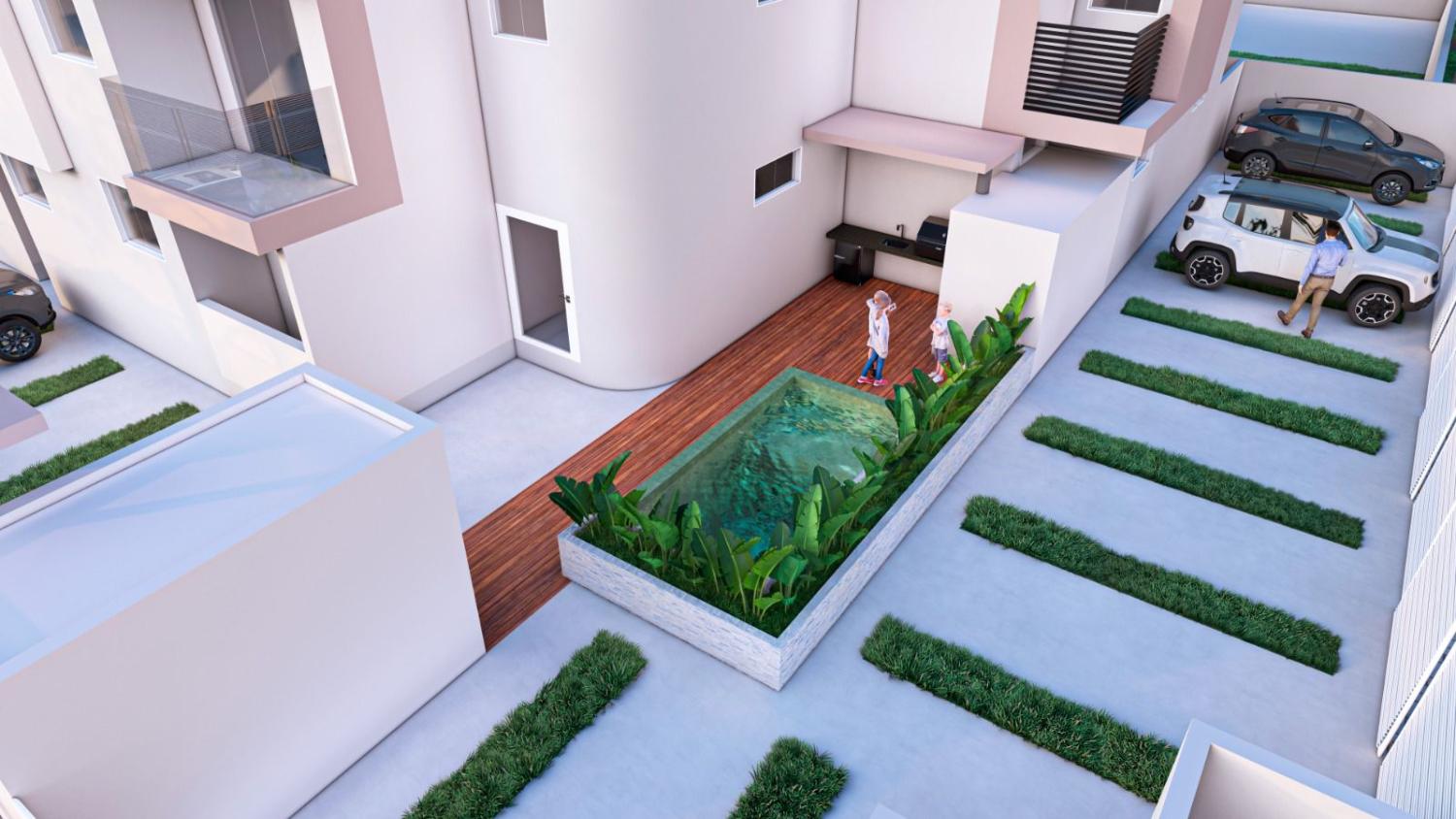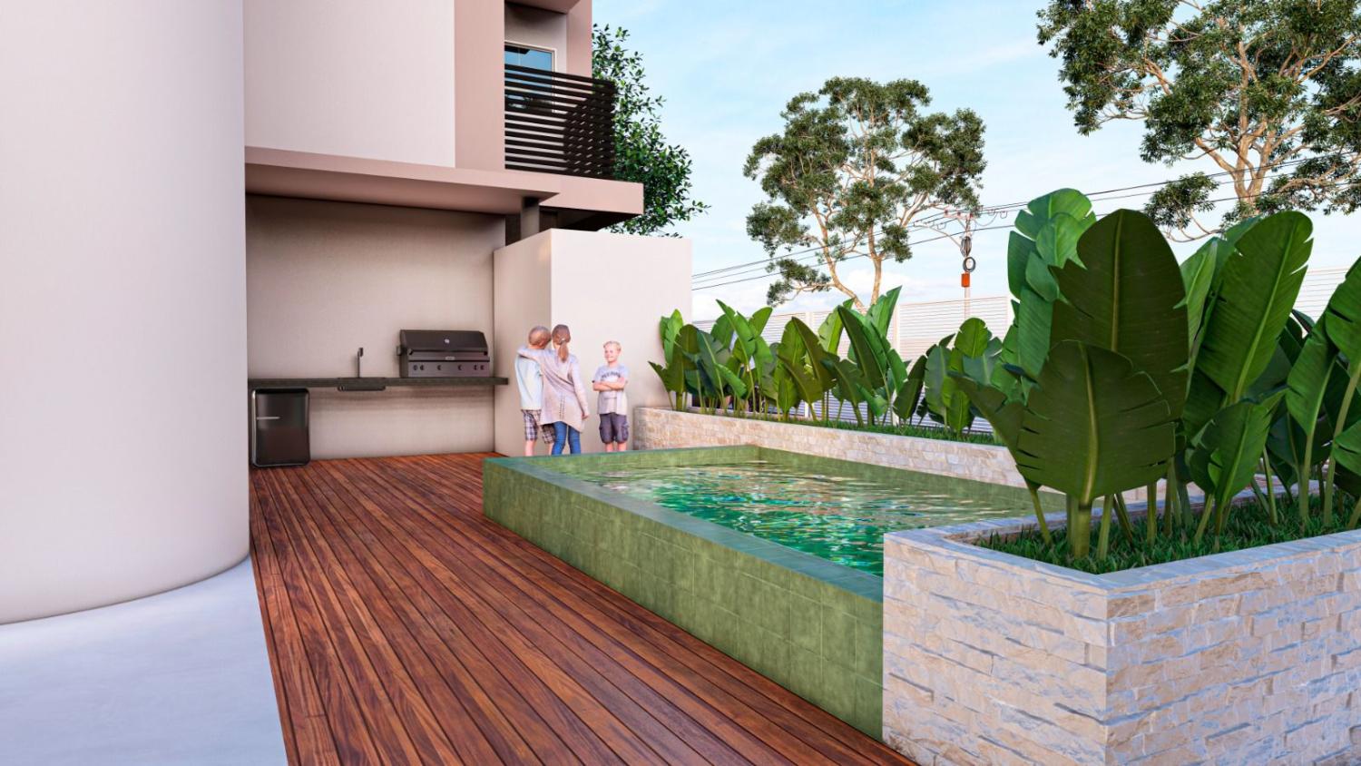 Piscina com área gourmet para momentos de lazer e confraternização